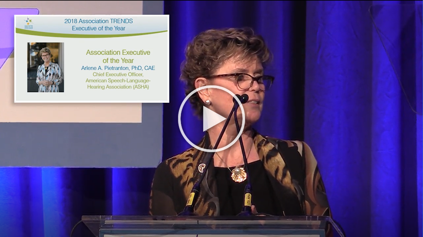 Association TRENDS’ Salute to Association Excellence honors the brightest stars of the association community and their commitment to excellence. In its 29th consecutive year, the biggest honor, Association Executive of the Year, was awarded to Arlene Pietranton, the Chief Executive Officer of the American Speech-Language-Hearing Association (ASHA). Watch below as she accepts her award at the Salute to Association Excellence Luncheon on March 1st, 2018.